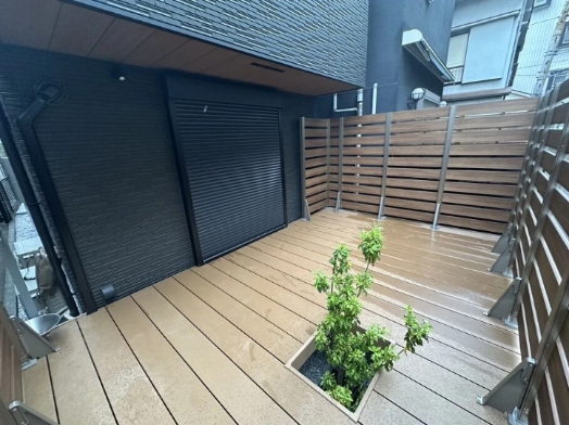 建物に調和する美しいデザインと、プライバシーや使いやすさを兼ね備えたエクステリア。